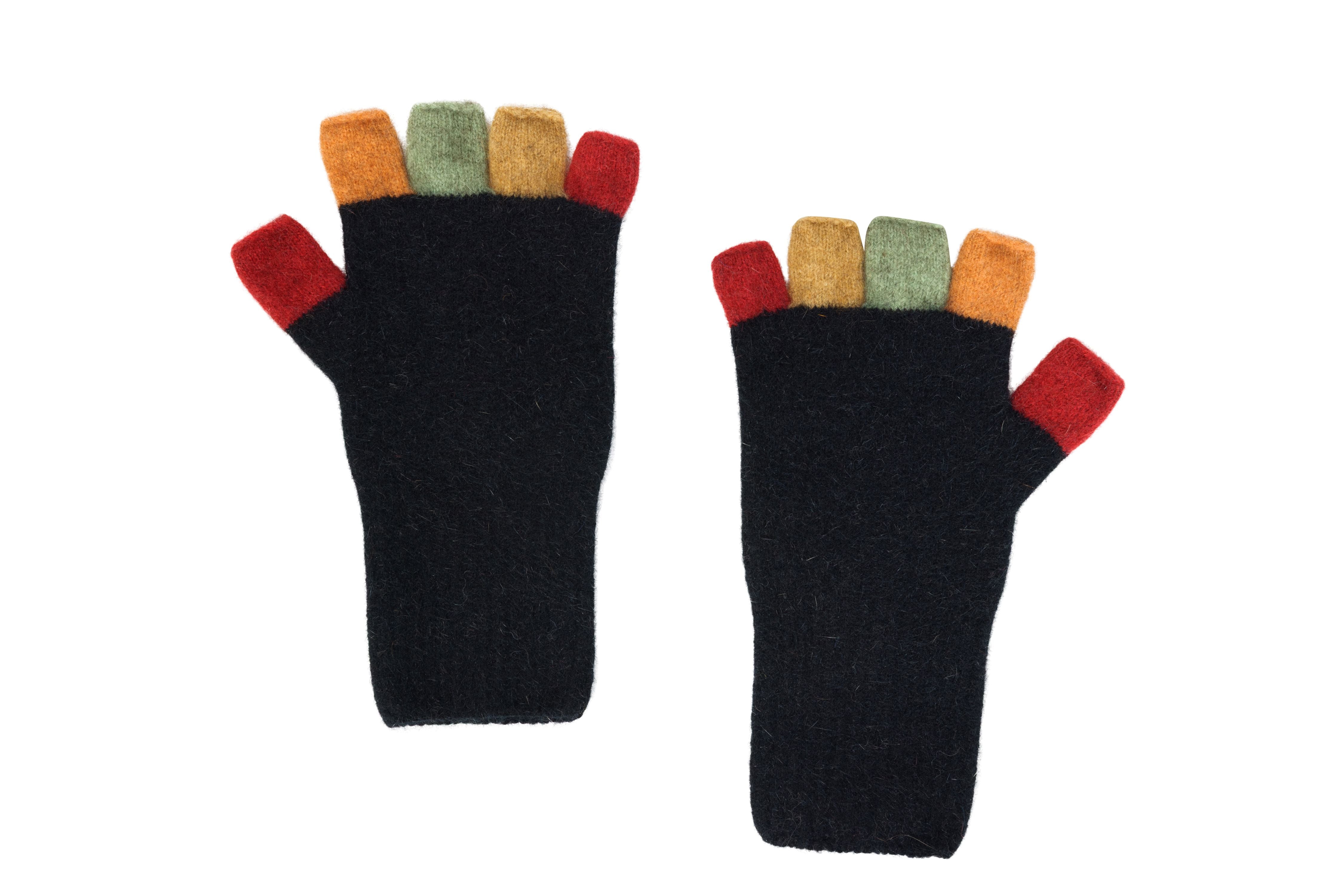 Featuring a fun eye-catching multi-colour design, these fingerless gloves provide exceptional warmth while maintaining full finger dexterity for everyday tasks. Crafted from the finest possum fur and merino wool blend, these fingerless gloves offer 35% more warmth than cashmere while remaining incredibly lightweight and comfortable.