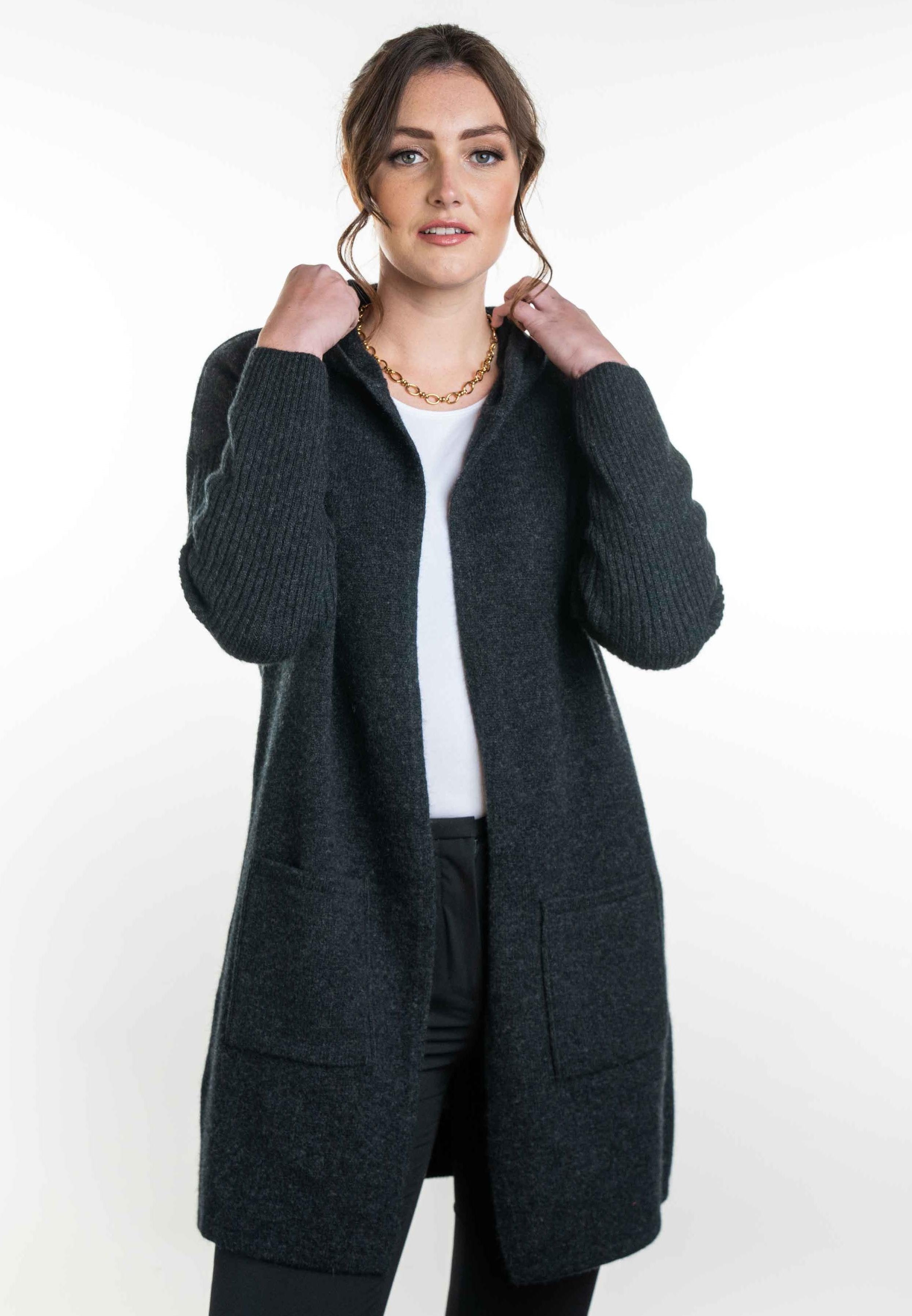 This hooded longline cardigan represents the perfect fusion of contemporary style and natural luxury. Crafted by Trilogy Knitwear from premium possum merino blend, this elegant cardigan features an extended longline silhouette that creates a sophisticated, flowing profile. The practical hood adds versatility while maintaining the garment's refined aesthetic. The unique possum merino blend offers exceptional warmth-to-weight ratio, being 35% warmer than cashmere while remaining remarkably lightweight. This natural fibre combination provides superior insulation, moisture-wicking properties, and long-lasting durability without pilling.
