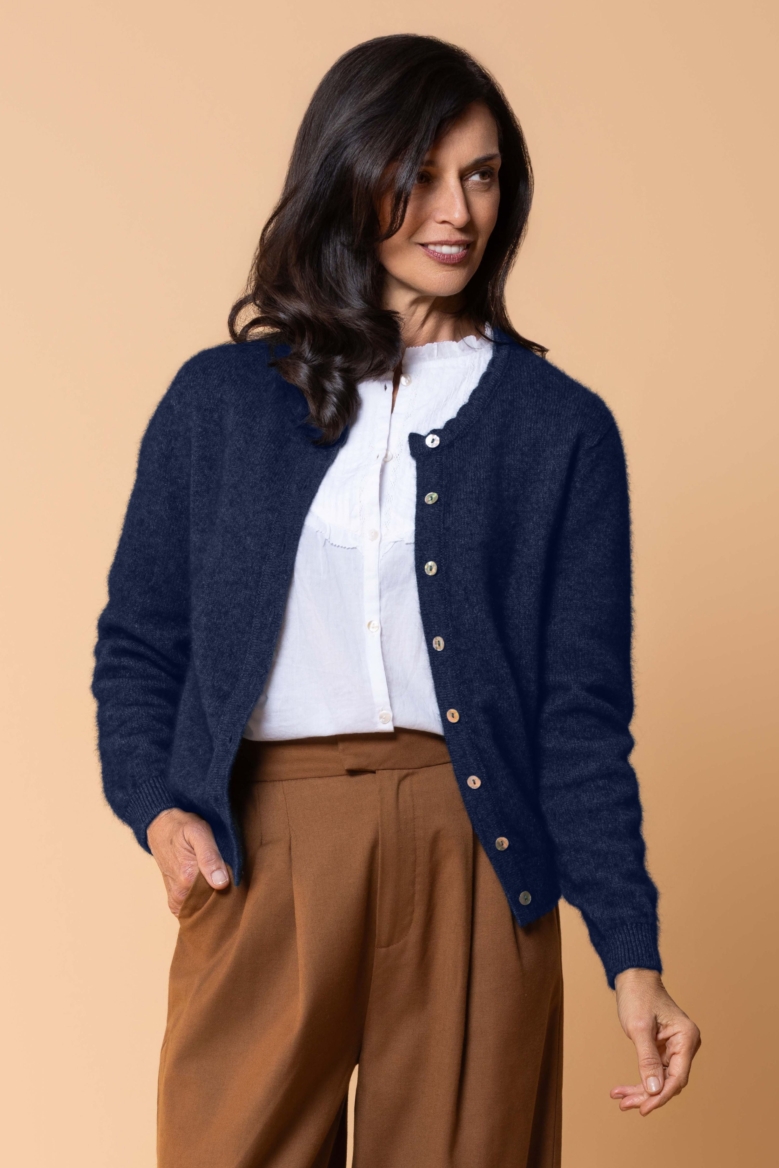 Elevate your everyday layering with the Celeste Possum Merino Cardigan—a refined essential crafted from Noble Wilde's premium possum merino blend. The relaxed silhouette pairs seamlessly with any outfit, while ribbed cuffs and hem provide a polished finish that resists stretching. Naturally breathable and temperature-regulating, this cardigan transitions effortlessly from office to weekend. Luxuriously soft against the skin with the durability to become a wardrobe staple you'll reach for season after season.