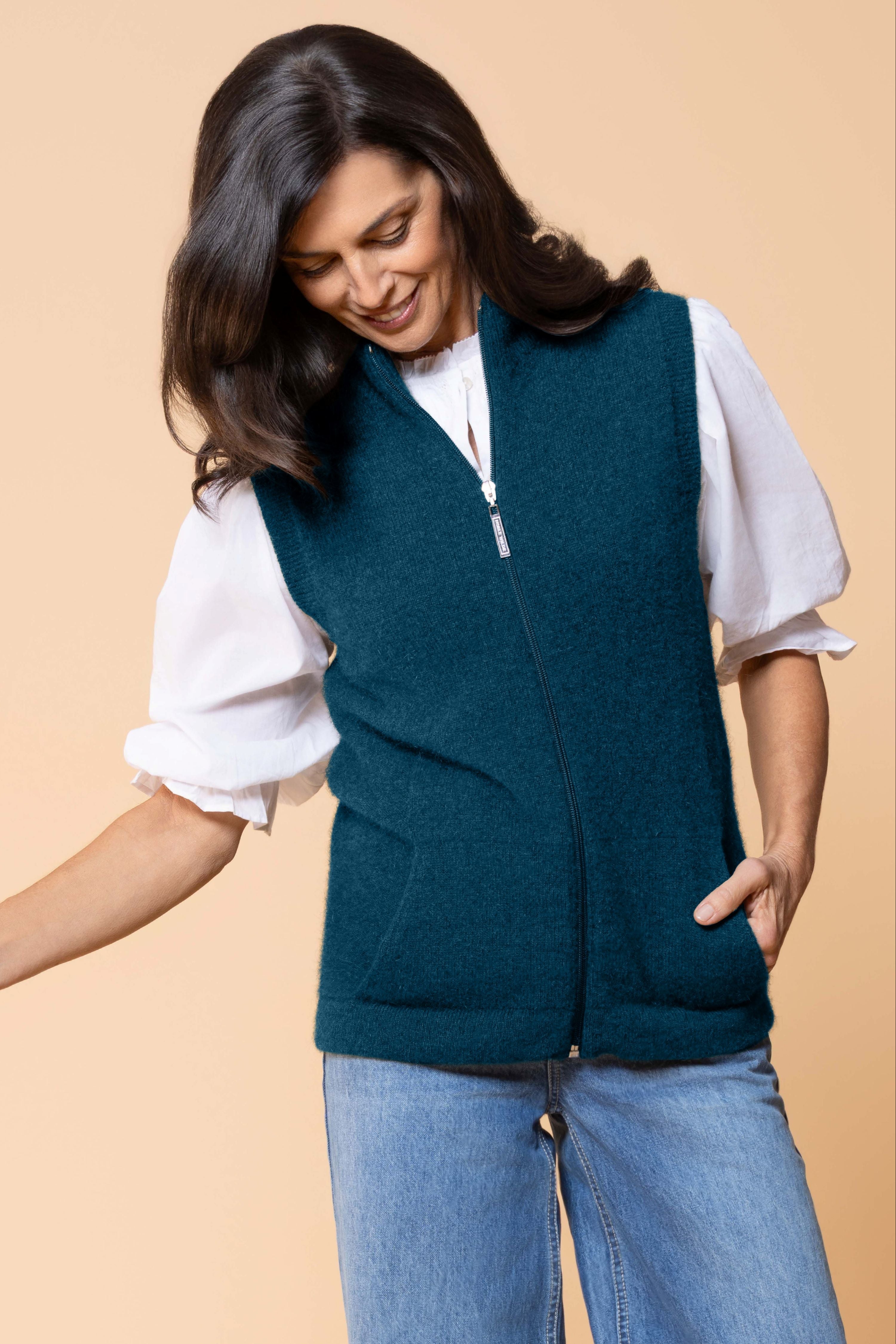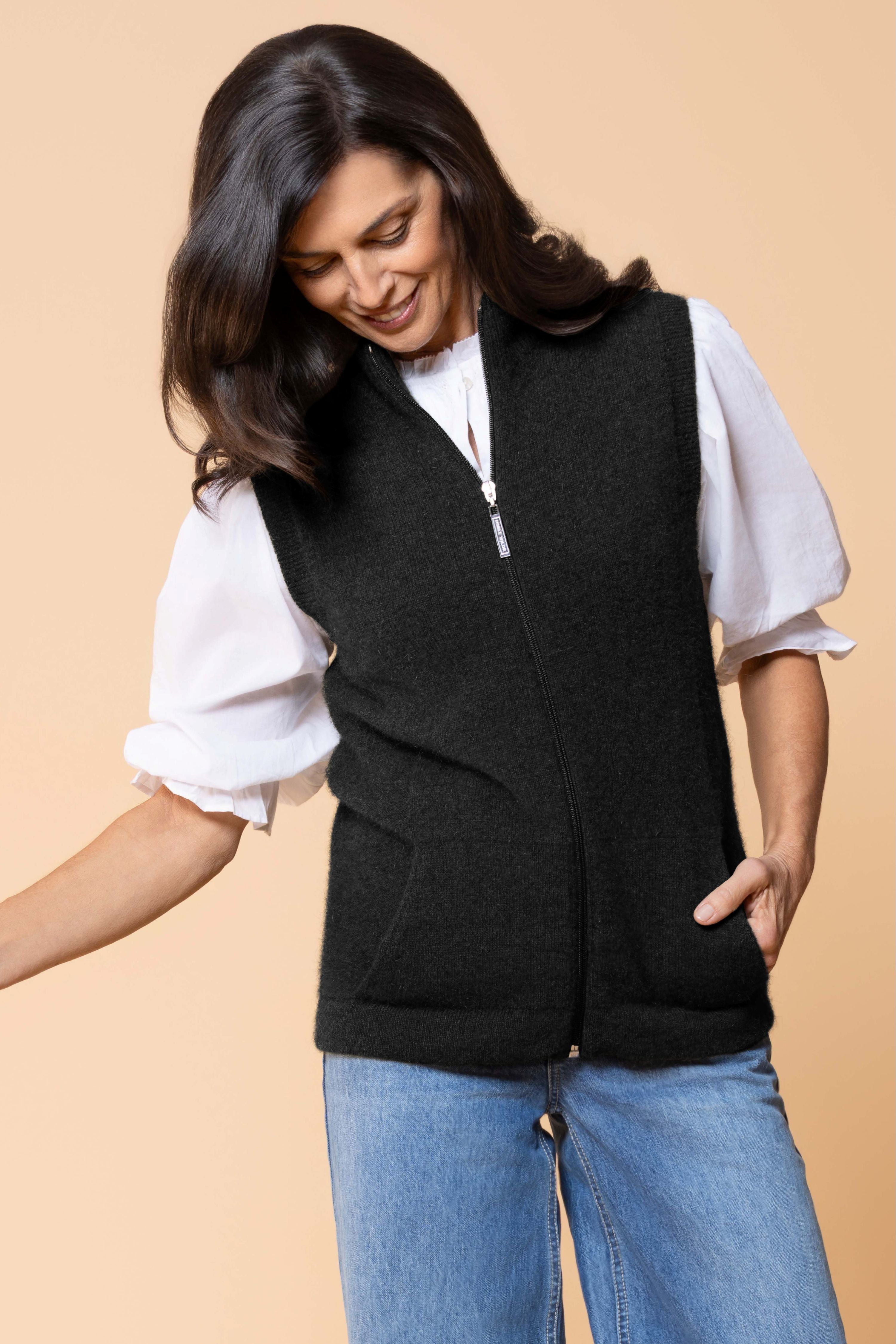 Experience warmth and style in the Gilet Possum Merino Vest, crafted from luxurious possum and merino wool blend. Featuring a full zip and a cozy turtle neck, this sleeveless vest provides versatile layering that adapts to changing temperatures. Its soft, breathable fabric offers lasting comfort while enhancing your outfit with a refined, natural texture. Perfect for outdoors or casual wear, this vest delivers both insulation and effortless elegance wherever you go.