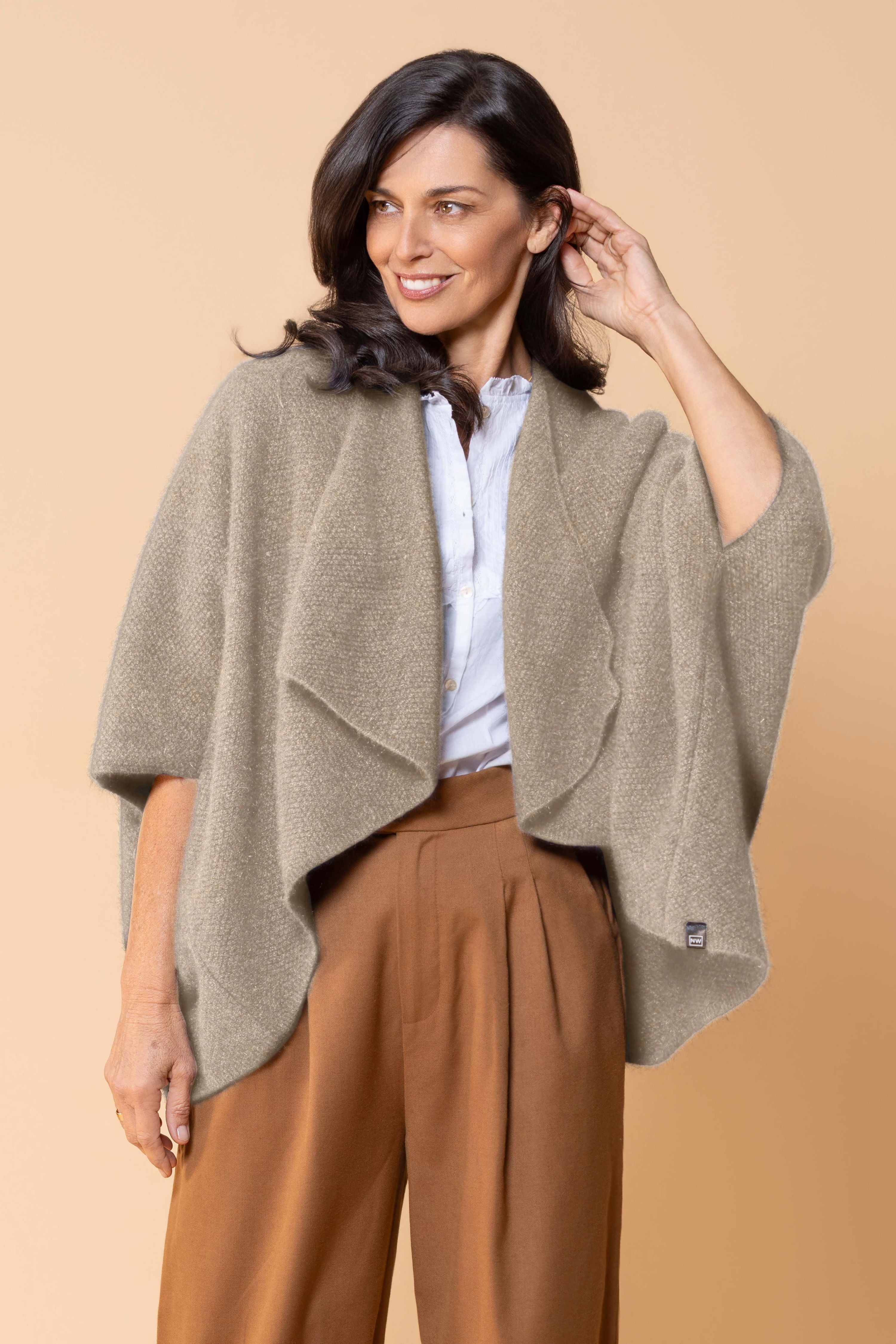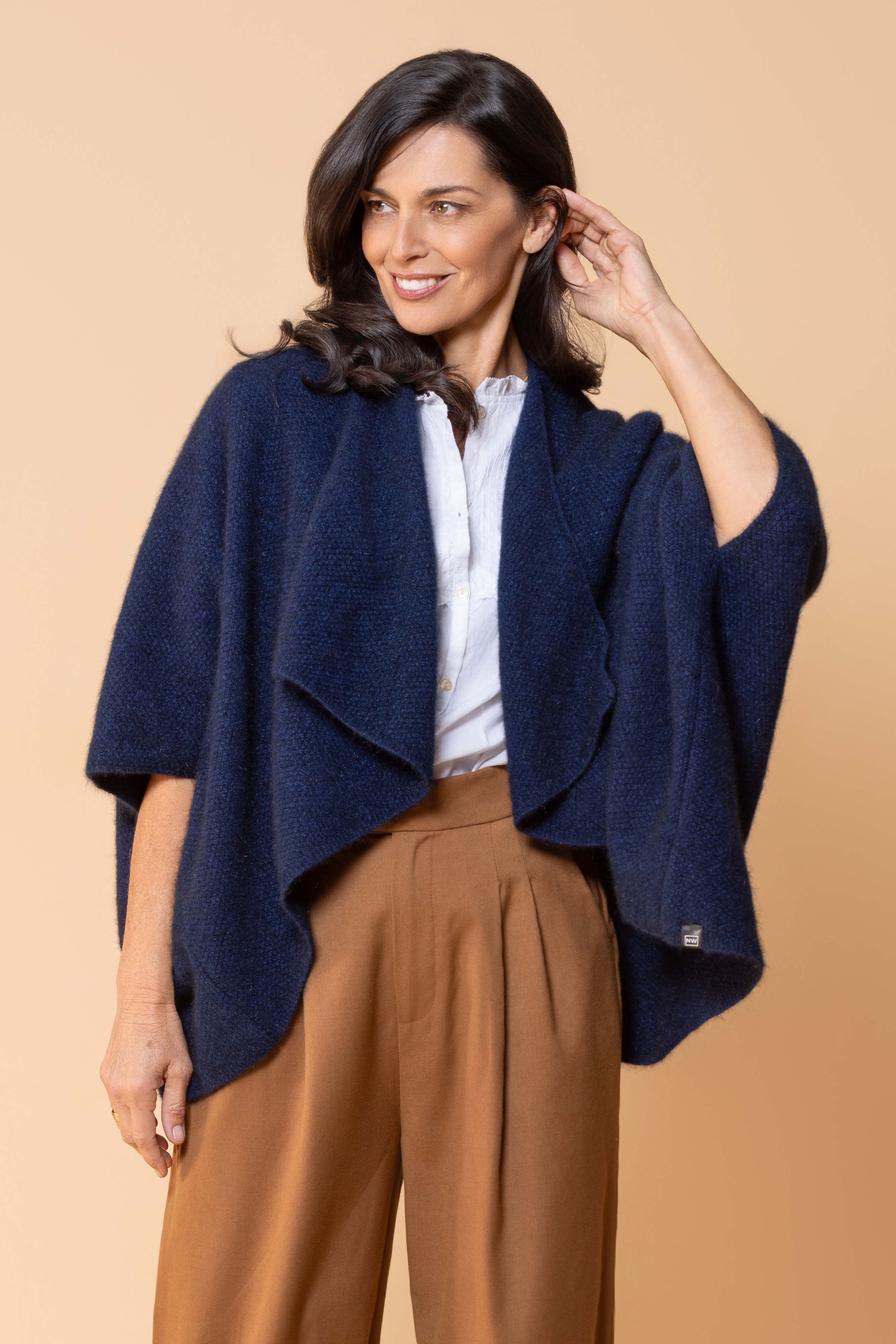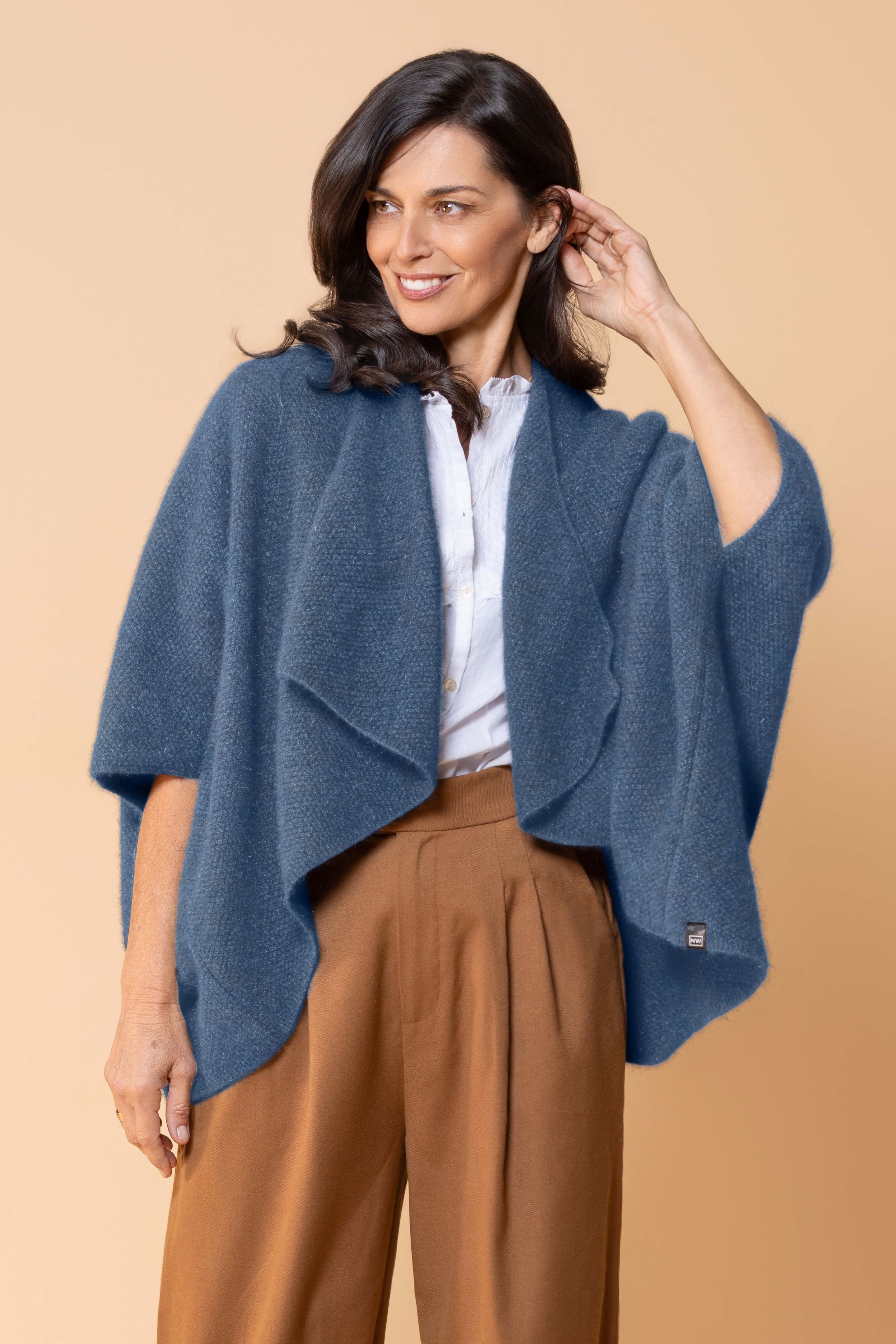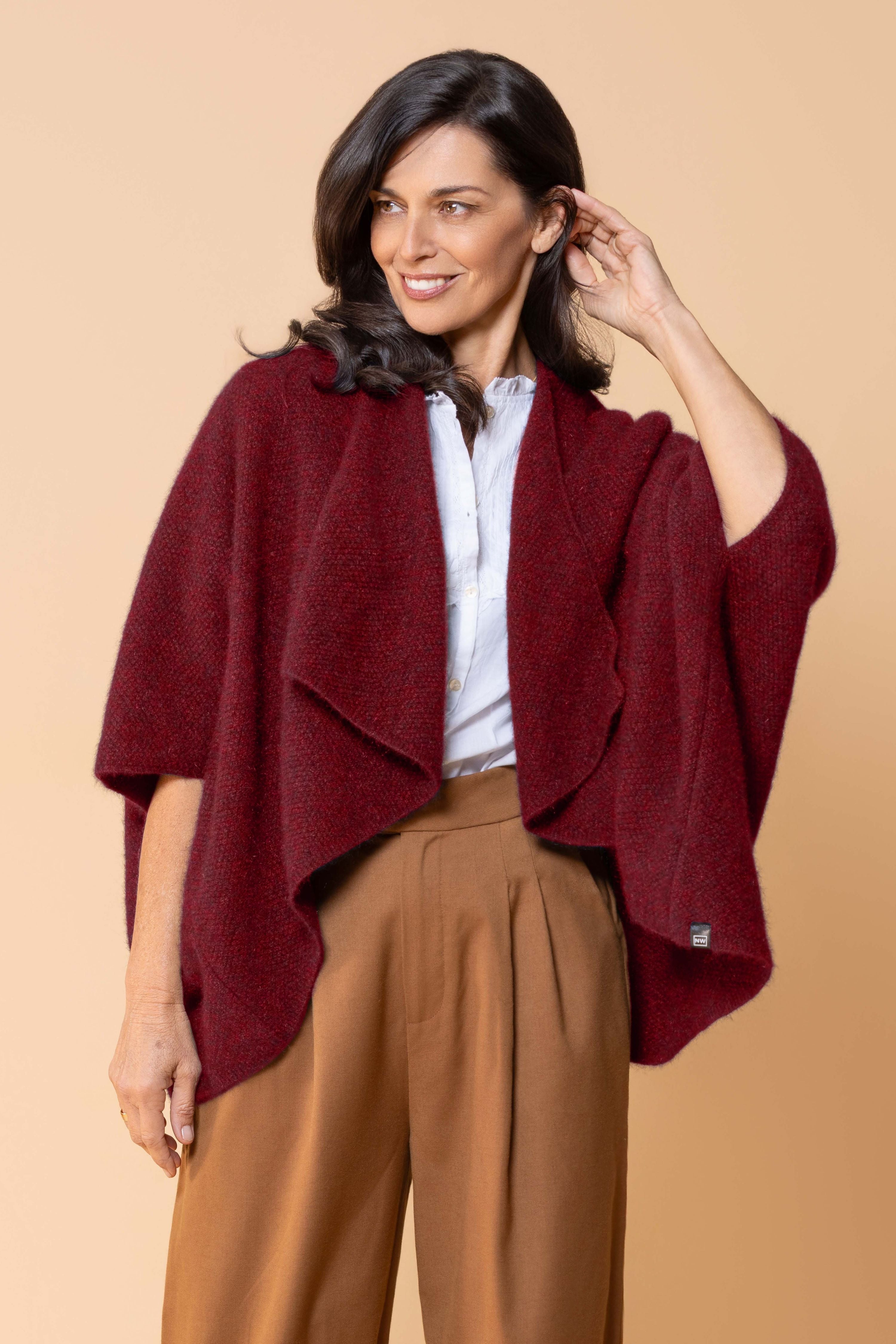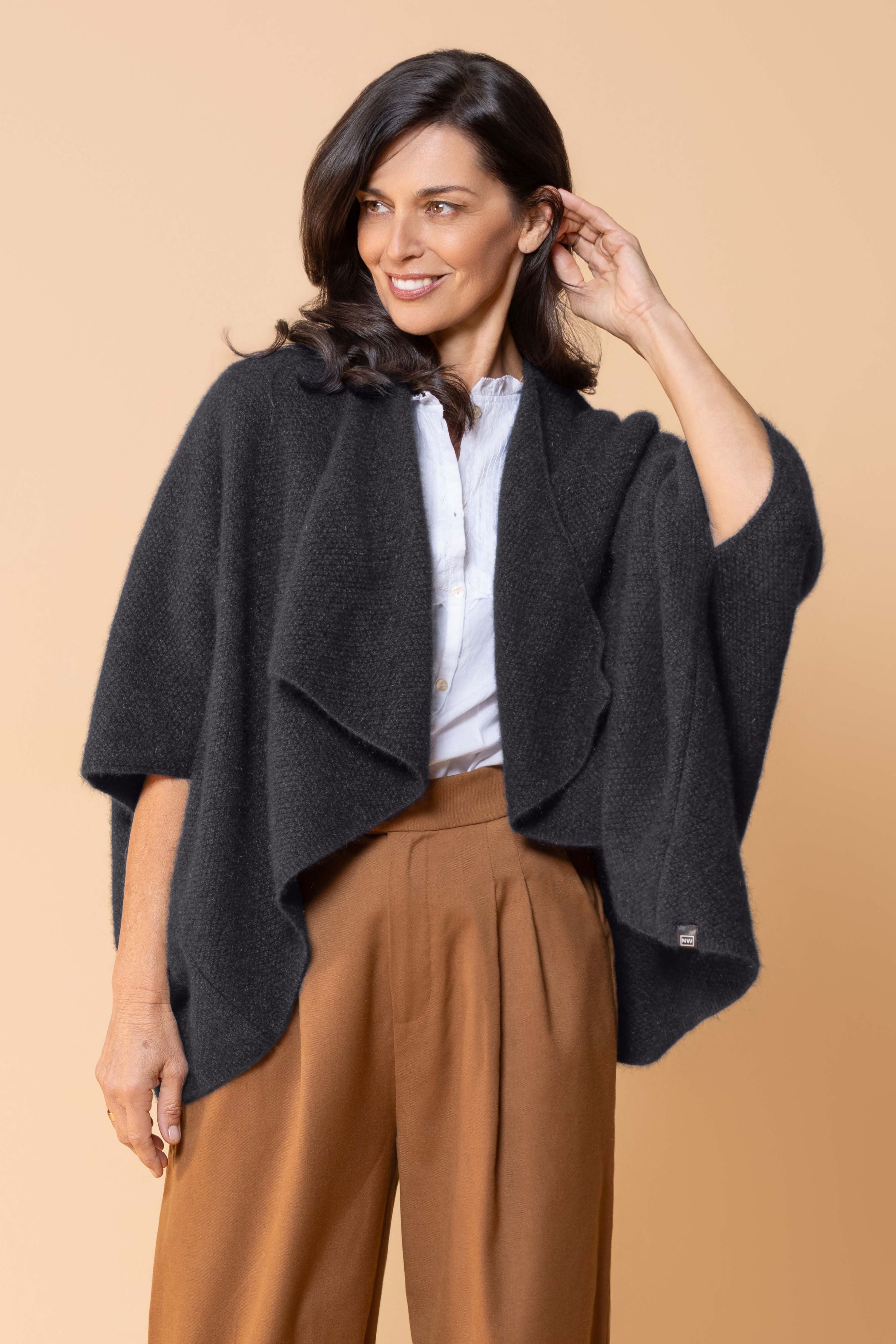 Expertly crafted from a premium blend of possum fur and merino wool, this longline wrap offers exceptional warmth while maintaining an elegant, sophisticated silhouette. This versatile longline wrap can be styled multiple ways, making it perfect for layering over business attire or weekend casual wear. The extended length provides generous coverage and creates a flattering drape that complements any figure.